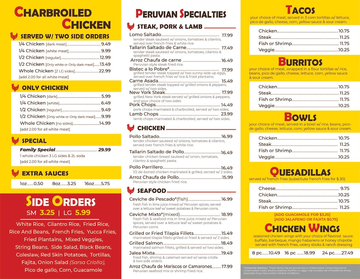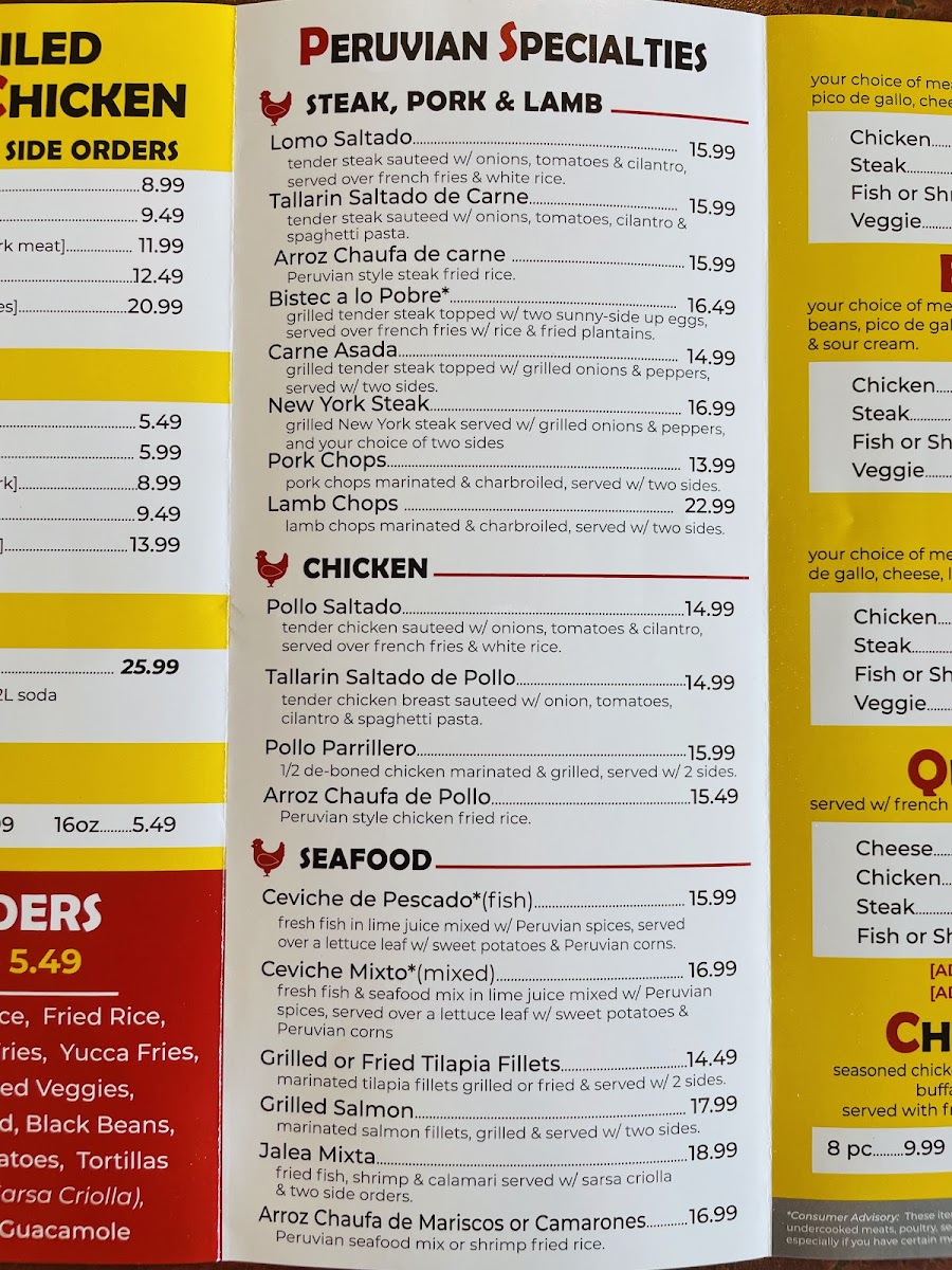 Upon entering, the aroma of their signature charbroiled chicken greets you—a visual feast as you watch the birds roasting in the back. Diners rave about the mixed kabobs, fried rice, and Chaufa Mariscos, all showcasing generous portions and delightful flavors.