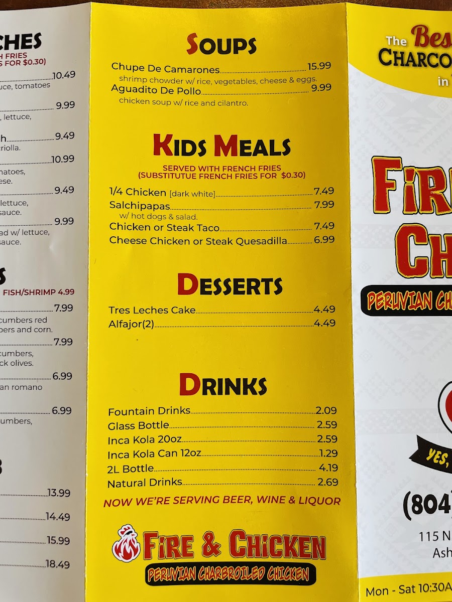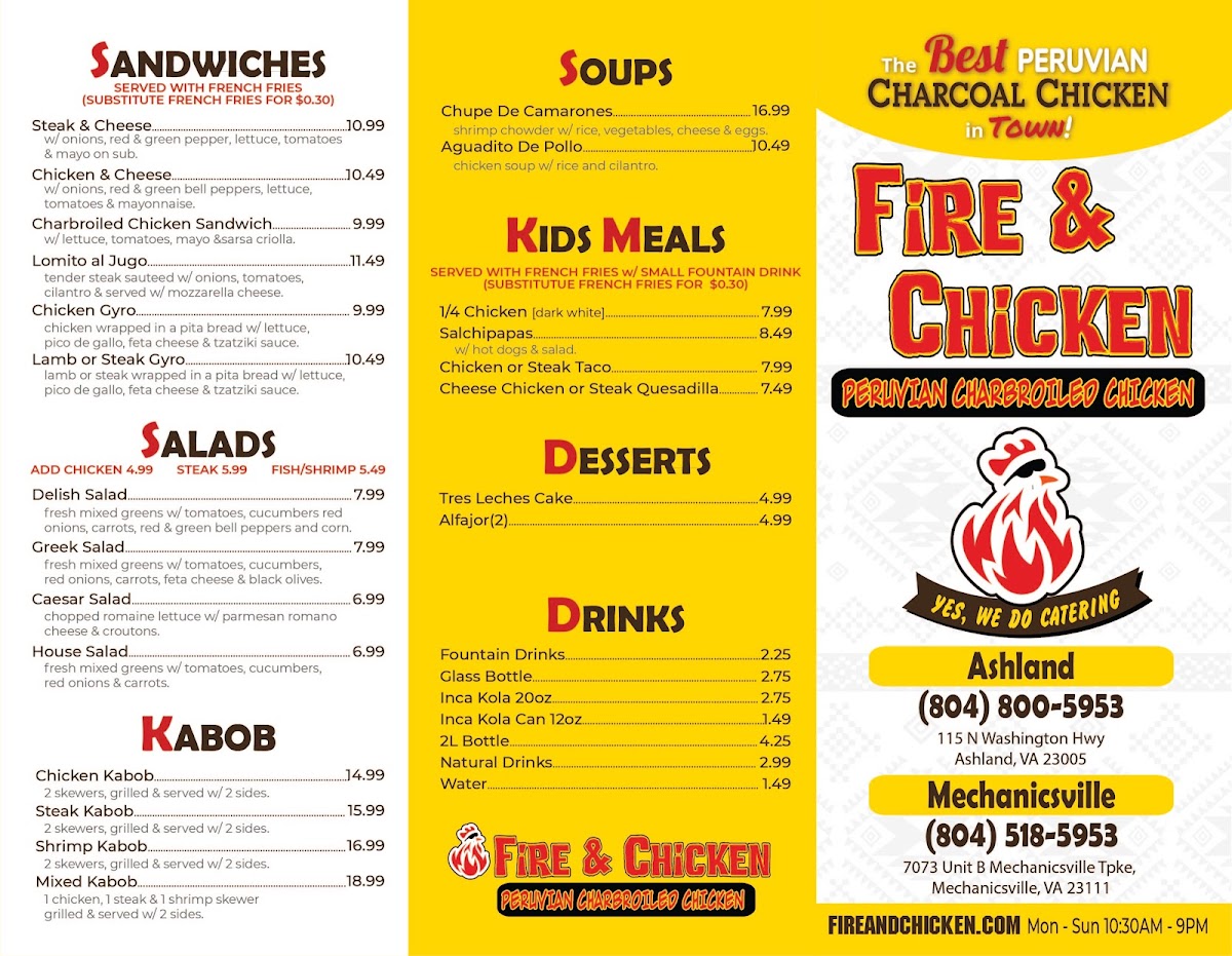 Welcome to Fire & Chicken, where the flavors of Peru come alive! Located at 115 N Washington Hwy, Ashland, VA, this restaurant specializes in tantalizing chicken dishes that leave every diner craving more.